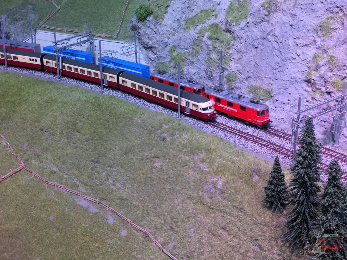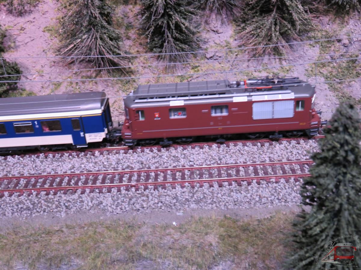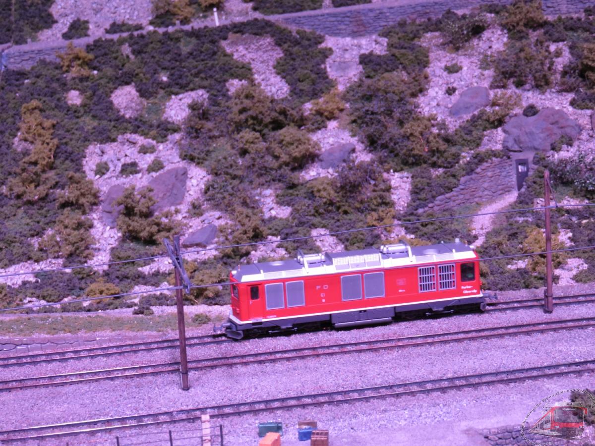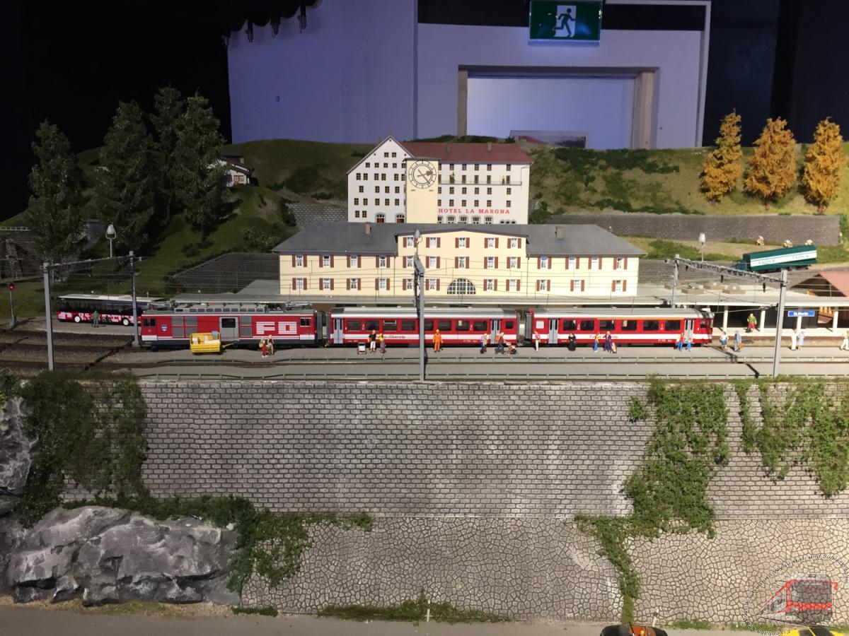 Landschaft und der modellmässige Bahnbetrieb.